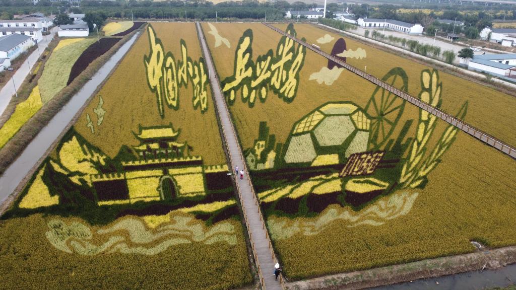 这是天津市津南区小站镇会馆村种植的稻田画。新华社记者 赵子硕 摄