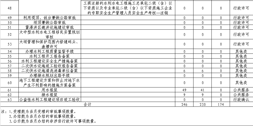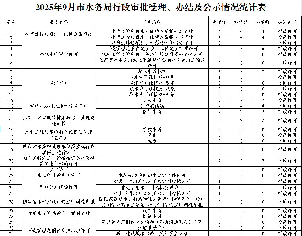 市水务局2025年9月行政审批受理、办结及公示情况
