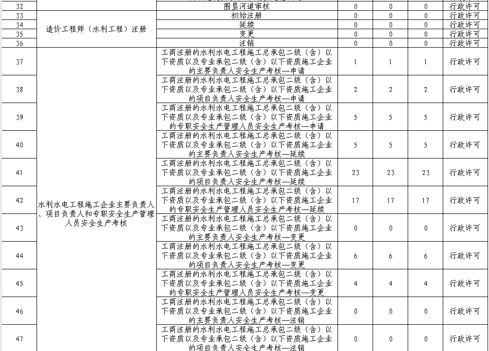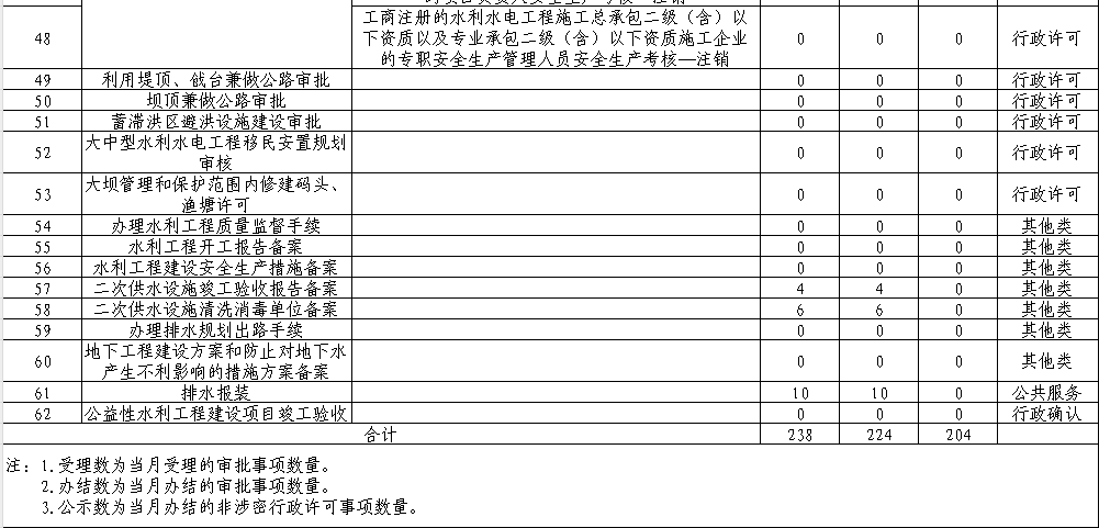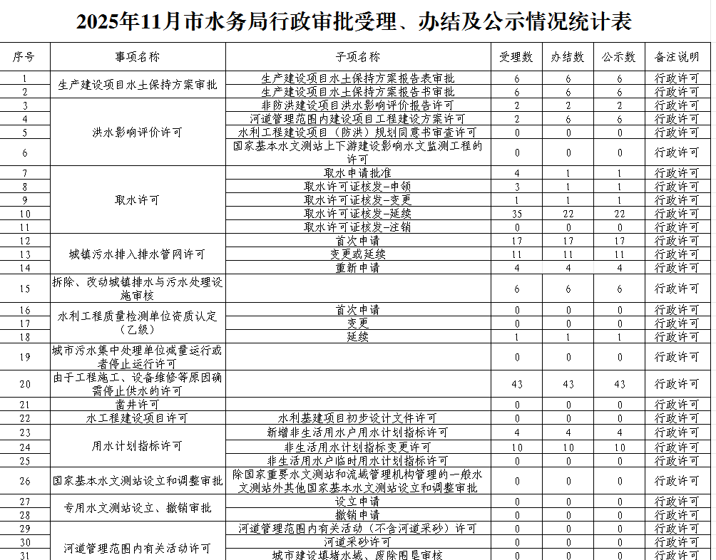 市水务局2025年11月行政审批受理、办结及公示情况