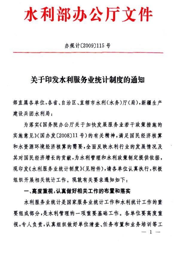 2、水利部《关于印发水利服务业统计制度的通知》